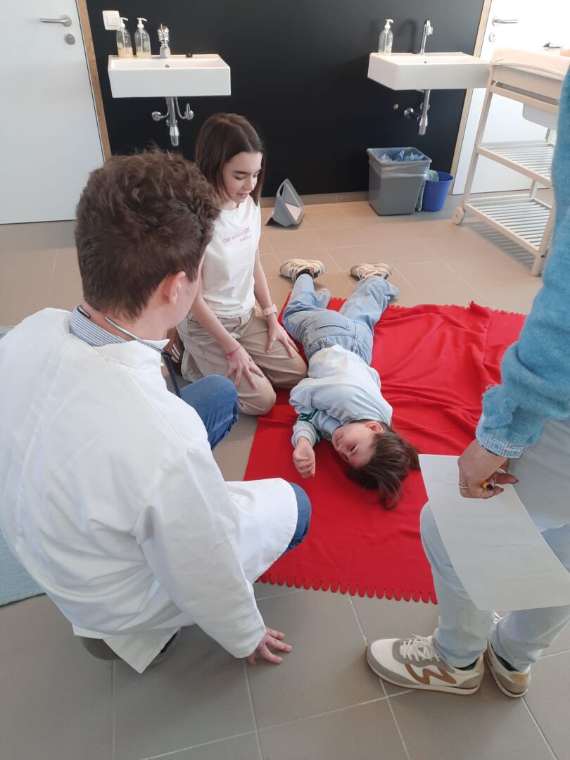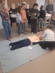 De leerlingen van 7KZ gaven een workshop EHBO aan de leerlingen van het 6de leerjaar van Basisschool Ursulinen.
